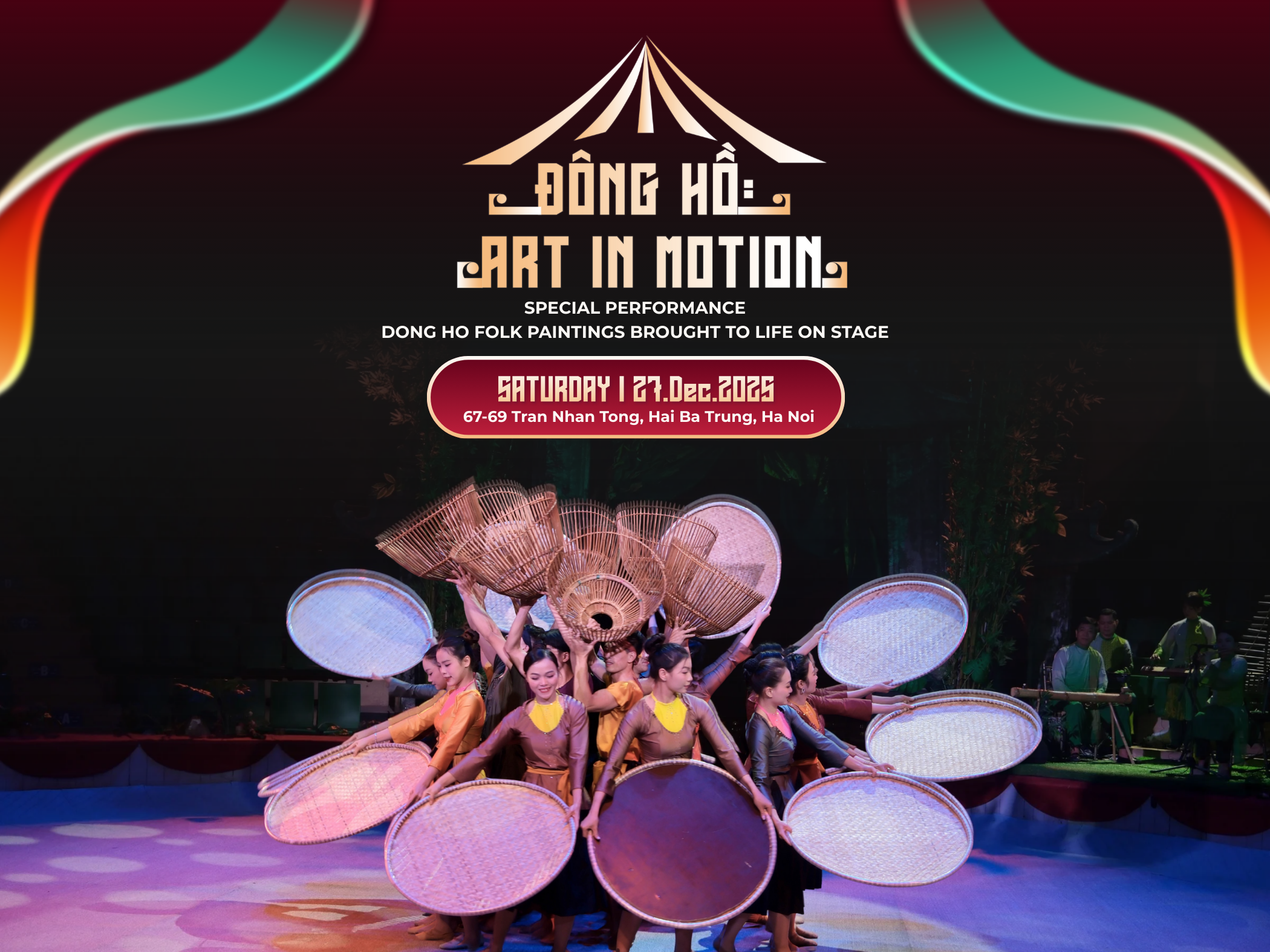 “Dong Ho: Art In Motion” is an event dedicated to reawakening the beauty of traditional Dong Ho folk paintings through the creative language of contemporary circus. With the performance “Memories of Ho Village”, audiences are guided back to a more than 500-year-old painting village along the poetic Duong River, a land preserving the cultural layers and timeless memories of Kinh Bac.